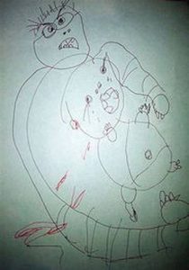 สุดท้ายจึงต้องใช้กุญแจไขเข้าไปในห้องเพื่อดูว่าเกิดอะไรขึ้นกับลูกชายกันแน่ และก็ ต้องตกใจเมื่อลูกชายกำลังคลุมโปรงอยู่ในผ้าห่ม ตัวจนตัวสั้นด้วยความหวาดกลัว ไม่ ว่าเธอจะพูดอย่างไรลูกก็ไม่ยอมตอบอะไรกลับมาสักคำ จนกระทั่งเธอสังเกตเห็นภาพ แปลกๆ ที่ลูกวาดทิ้งไว้บนโต๊ะ ทำก็เข้าใจสถานการณ์ได้บางส่วน….