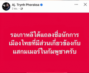 เกิดกระแสวิพากษ์วิจารณ์อย่างหนักในแวดวงการเมืองไทย หลังจากมีรายงานข่าวอ้างอิงข้อมูลจากนายกรัฐมนตรีเกาหลีใต้ ที่ระบุว่า มีนักการเมืองไทยจำนวน 7 คน มีส่วนเกี่ยวข้องกับแก๊งคอลเซ็นเตอร์ (สแกมเมอร์) ซึ่งเป็นอาชญากรรมข้ามชาติในประเทศกัมพูชาก่อนหน้านี้เคยมีข่าวลือเกี่ยวกับนักการเมืองไทยหลายคนพัวพันกับแก๊งสแกมเมอร์ในกัมพูชา แต่ล่าสุดดูเหมือนสถานการณ์จะทวีความเข้มข้นขึ้น เมื่อมีการอ้างถึงแหล่งข่าวระดับสูงจากประเทศเกาหลีใต้อาจารย์ตรินทร์ ได้โพสต์ข้อความบนโซเชียลมีเดีย ระบุว่า รอเกาหลีใต้แถลงชื่อนักการเมืองไทยที่มีส่วนเกี่ยวข้องกับสแกมเมอร์ในกัมพูชาครับ