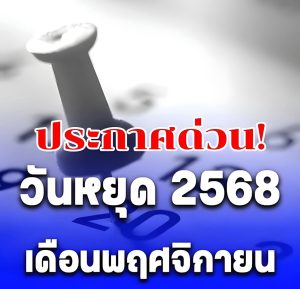 26 ต.ค. 2568อนพฤศจิกายน 2568 เตรียมตัววางแผนเที่ยวได้เลย เพราะไม่มีวันหยุดราชการหรือวันหยุดนักขัตฤกษ์เลยแม้แต่วันเดียว ตลอดทั้งเดือนนี้จึงมีแต่วันหยุดสุดสัปดาห์รวม 8 วัน เท่านั้น (วันเสาร์-อาทิตย์)