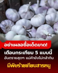 ระวัง! เตือนภัย 5 ประเภท “กระเทียม” สุดอันตราย ที่ไม่ควรซื้อ แม้แต่แม่ค้ายังไม่กล้ากินบทความที่รายงานผ่านทางเว็บไซต์ phunuso ได้เตือนถึง 5 ประเภทกระเทียมที่ “ไม่ควรซื้อเด็ดขาด” หากคุณไม่อยากเสี่ยงโรคร้าย! ใครจะคิดว่าเพียงกระเทียมเล็กๆ ก็มี “กับดัก” ที่อาจส่งผลต่อสุขภาพได้ถึงขั้นร้ายแรง? นับเป็นเรื่องที่คนทุกประเทศควรตระหนัก เพื่อป้องกันตนเองจากอันตรายที่อาจนำเข้าปาก-ลงท้องไปโดยไม่รู้ตัว ซึ่งผู้เขียนบทความกล่าวไว้ดังนี้
