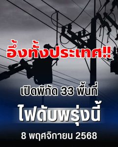 การไฟฟ้านครหลวง (กฟน.) ประกาศเรื่อง มีความจำเป็นต้องดับไฟ ในบางพื้นที่ของกรุงเทพมหานคร สมุทรปราการ และนนทบุรี ในวันเสาร์ ที่ 8 พฤศจิกายน 2568 ที่จะถึงนี้ เพื่อพัฒนาหรือบำรุงรักษาระบบการจ่ายกระแสไฟฟ้าให้มีประสิทธิภาพยิ่งขึ้น ทั้งนี้ เพื่อให้เกิดความปลอดภัยในการปฏิบัติงาน กฟน. จึงจำเป็นต้องงดจ่ายกระแสไฟเป็นการชั่วคราวให้กับบริเวณพื้นที่จำนวนทั้งหมด 33 จุด ในพื้นที่ดังต่อไปนี้