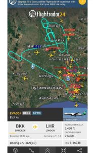 กลายเป็นที่หลายคนต่างรอติดตามข่าว หลังจากที่มีรายงานว่า สายการบิน EVA Air เที่ยวบิน BR67 กรุงเทพฯ-ลอนดอน บิน ออกจากสุวรรณภูมิ 13.01 น.9/11/2025 ยังบินวนเหนือน่านฟ้า ไทย มุ่งหน้ากลับท่าอากาศยานสุวรรณภูมิ กรุงเทพฯ ซึ่งยังไม่ ทราบว่าเกิดเหตุอะไรขึ้น เครื่องบินถึงได้บินวนและมุ่งหน้ากลับ มาลงจอดที่สนามบินสุวรรณภูมิ ทั้งนี้ หากมีความคืบหน้าะ รายงานให้ทราบต่อไป