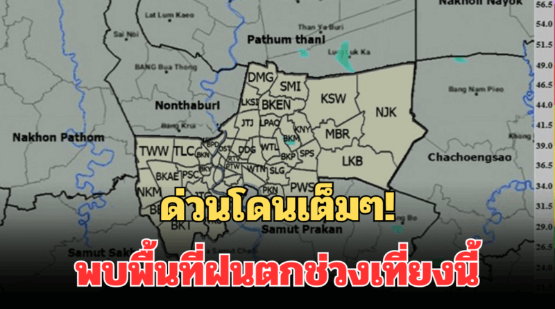 พบกลุ่มฝนบริเวณกรุงเทพมหานคร (เขตหนองจอก คันนายาว บึงกุ่ม) ปทุมธานี สมุทรปราการ คาดว่าปกคลุมมากกว่า 1 ชั่วโมง