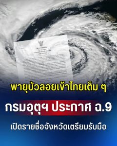 เมื่อช่วงดึกของวันที่ 28 กันยายน 2568 ที่ผ่านมา ศูนย์ประชาสัมพันธ์กรมอุตุนิยมวิทยา ประกาศกรมอุตุนิยมวิทยา เรื่อง พายุบัวลอย และฝนตกหนักถึงหนักมากบริเวณประเทศไทย ฉบับที่ 9 (270/2568) โดยระบุว่า เมื่อเวลา 22.00 น. ของวันนี้ (28 ก.ย. 68) พายุไต้ฝุ่น บัวลอย (BUALOI) บริเวณทะเลจีนใต้ตอนบน มีศูนย์กลางอยู่ห่างจากเมืองกว๋างบิ่ญ ประเทศเวียดนาม ไปทางทิศตะวันออกประมาณ 32 กิโลเมตร หรือที่ละติจูด 17.7 องศาเหนือ ลองจิจูด 106.7 องศาตะวันออก มีความเร็วลมสูงสุดใกล้ศูนย์กลางประมาณ 120 กิโลเมตรต่อชั่วโมง