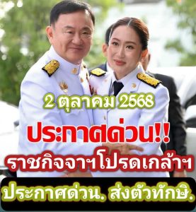 ด่วน!! ราชกิจจาฯโปรดเกล้าฯ ประกาศด่วน. ส่งตัวทักษิ…3 ตุลาคม 2568 : ดูสาเหตุในคอมเมนต์